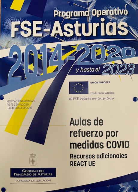 La Dirección del colegio José García Fernández pone en conocimiento de las familias del mismo que durante el presente curso escolar en nuestro centro se han llevado a cabo desdobles educativos como consecuencia de la crisis sanitaria derivada de la COVID-19. Estas actuaciones están cofinanciadas por el Programa Operativo del Fondo Social Europeo del Principado de Asturias 2014-2020 REACT_EU