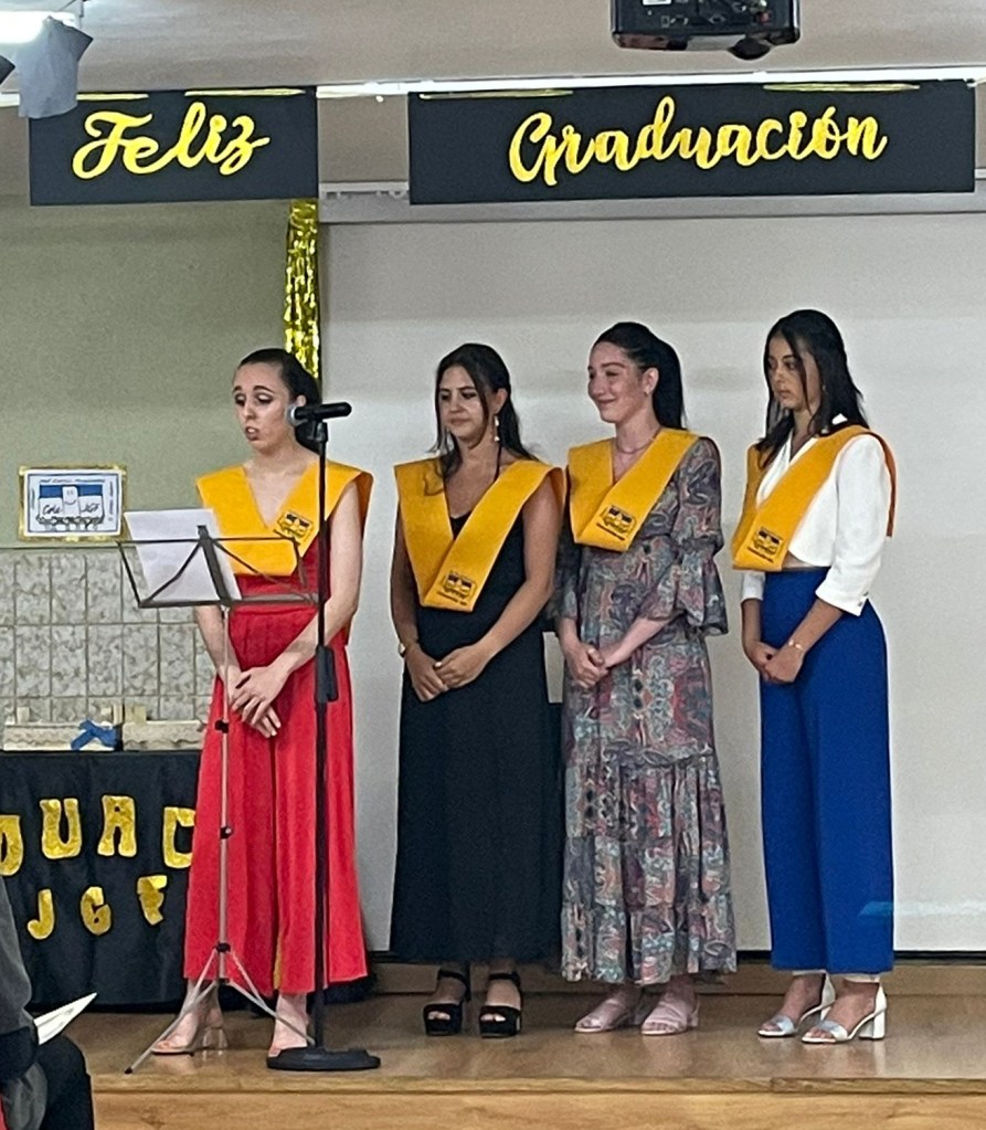 El pasado martes 21 de junio, celebramos la fiesta de fin de curso en el colegio. Hubo muchos nervios y risas ya que, habían pasado casi dos años y medio desde la última celebración. En esta ocasión quisimos hacer nuestra particular “Fiesta del Rosario” con ofrenda de corona de flores, bailes y música en directo del grupo Delorean, de la cual disfrutamos toda la comunidad educativa, alumnado y familias. Agradecemos a Richard de la Uz, profesor de música y componente del grupo Delorean su colaboración y buen hacer. También le damos las gracias a la Cofradía de Pescadores Nuestra Señora del Rosario por su inestimable colaboración con dicha celebración.