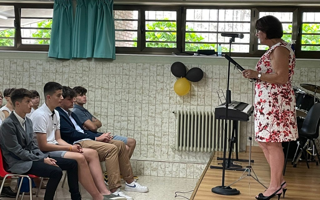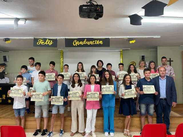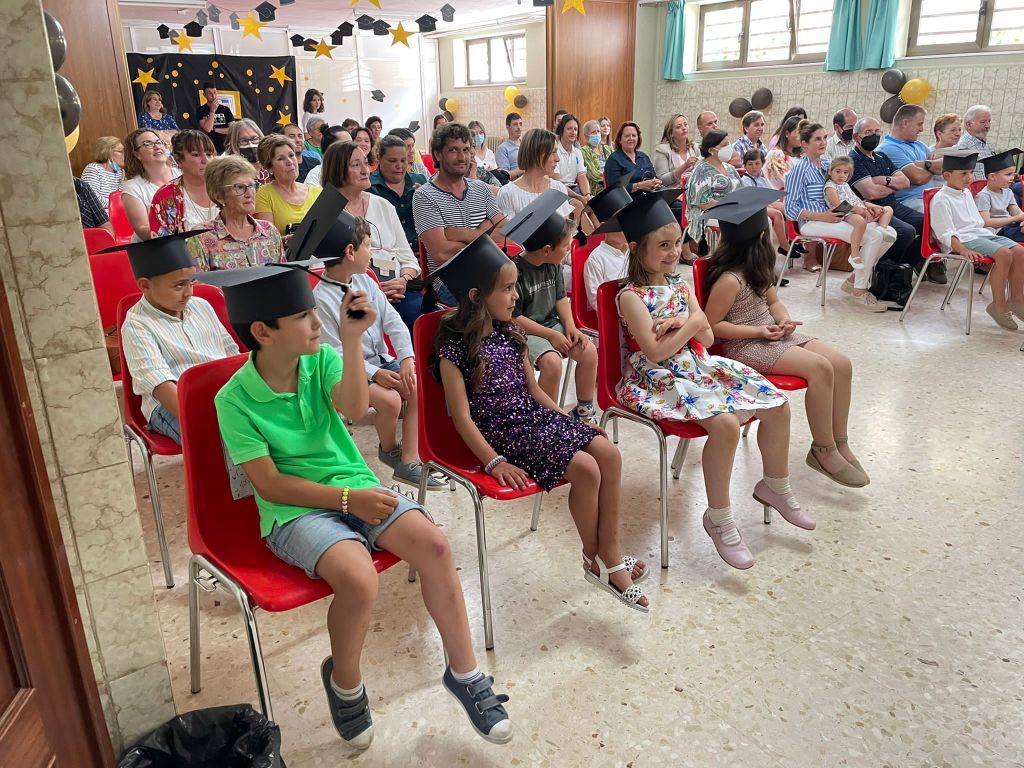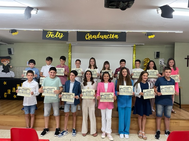 El pasado lunes 20 de junio celebramos la Graduación del alumnado de 6º de EP en el colegio. Este emotivo acto contó con la presencia de las familias de todos ellos después de dos cursos en los que no habían podido participar de manera presencial. Todos los chicos y chicas de 6º acudieron nerviosos pero con su mejor y más cuidada apariencia, propia de la importancia del momento, para escuchar unos inmejorables consejos y recuerdos de esta Etapa por parte de la directora y de su tutor. Una vez recibidos los diplomas individuales, y tras las cordiales palabras de Ernesto, pudieron ver un vídeo entrañable que recorría con imágenes todos los cursos de Infantil y Primaria y que recordaba trabajos de aula y salidas culturales. Finalmente, y después de las fotos de grupo, todos pudieron disfrutar de una merienda en el patio del colegio y charlar animadamente comentando las impresiones de la tarde. Solo queda desearles un feliz inicio de la nueva Etapa de Secundaria.